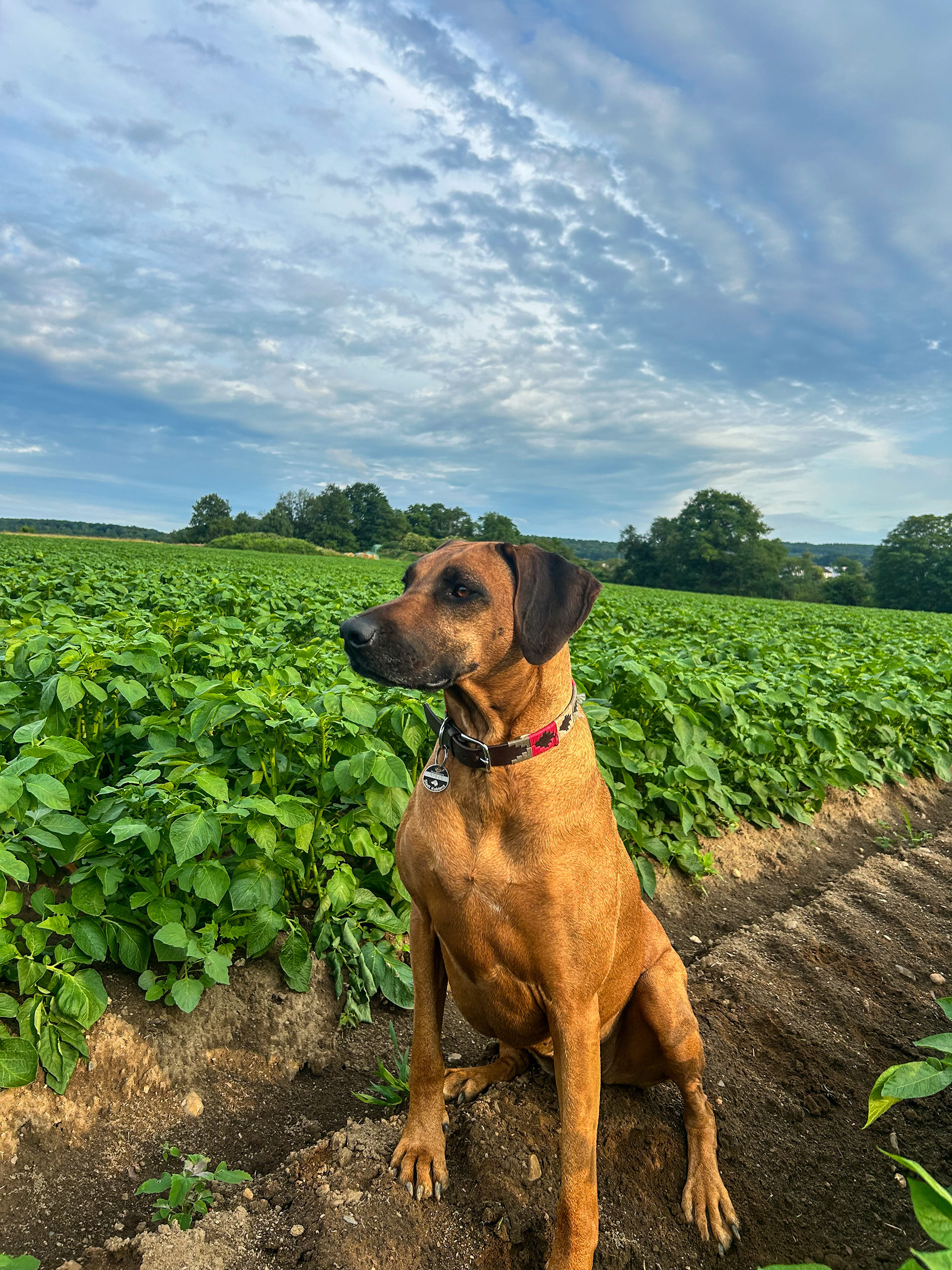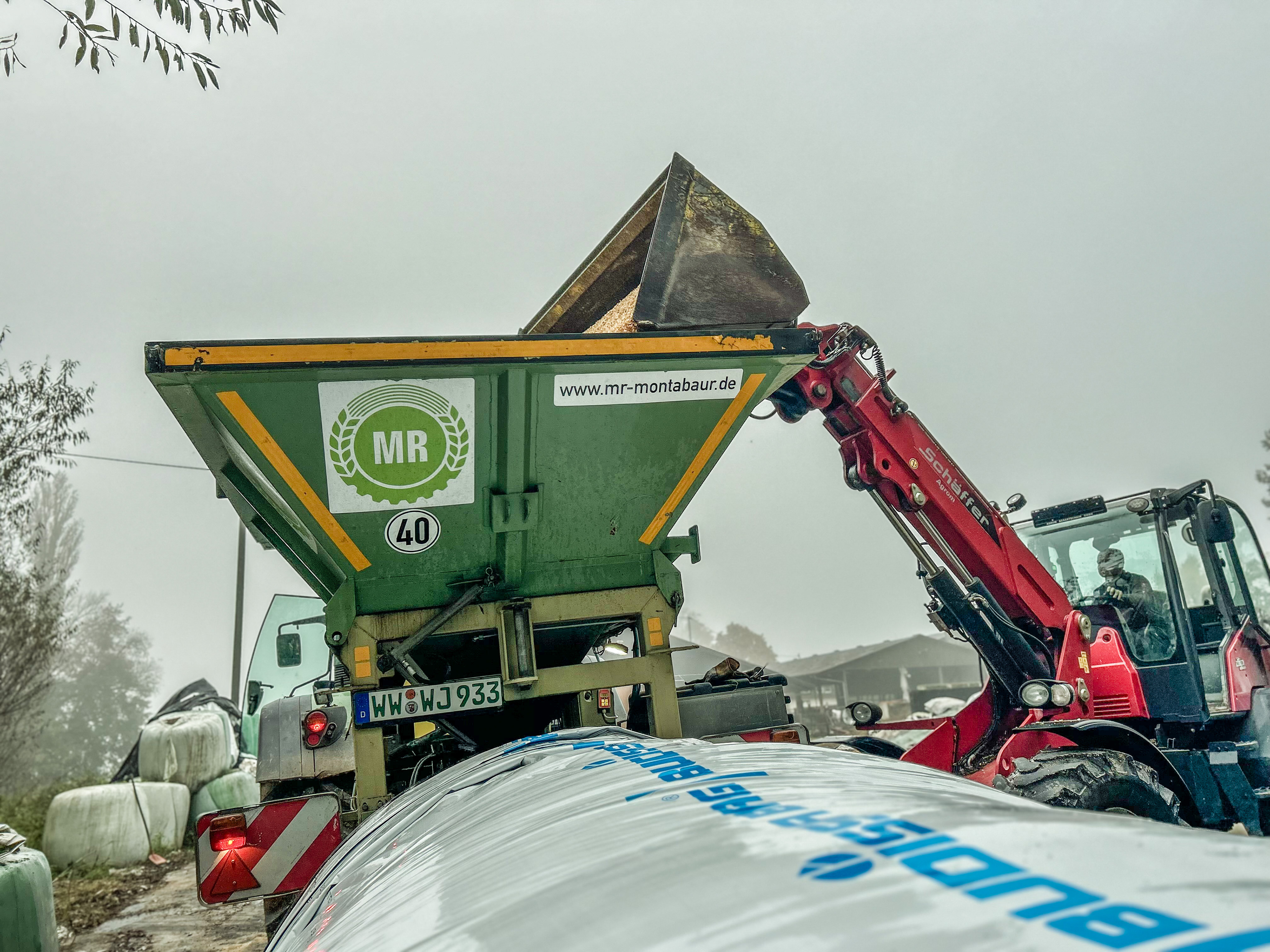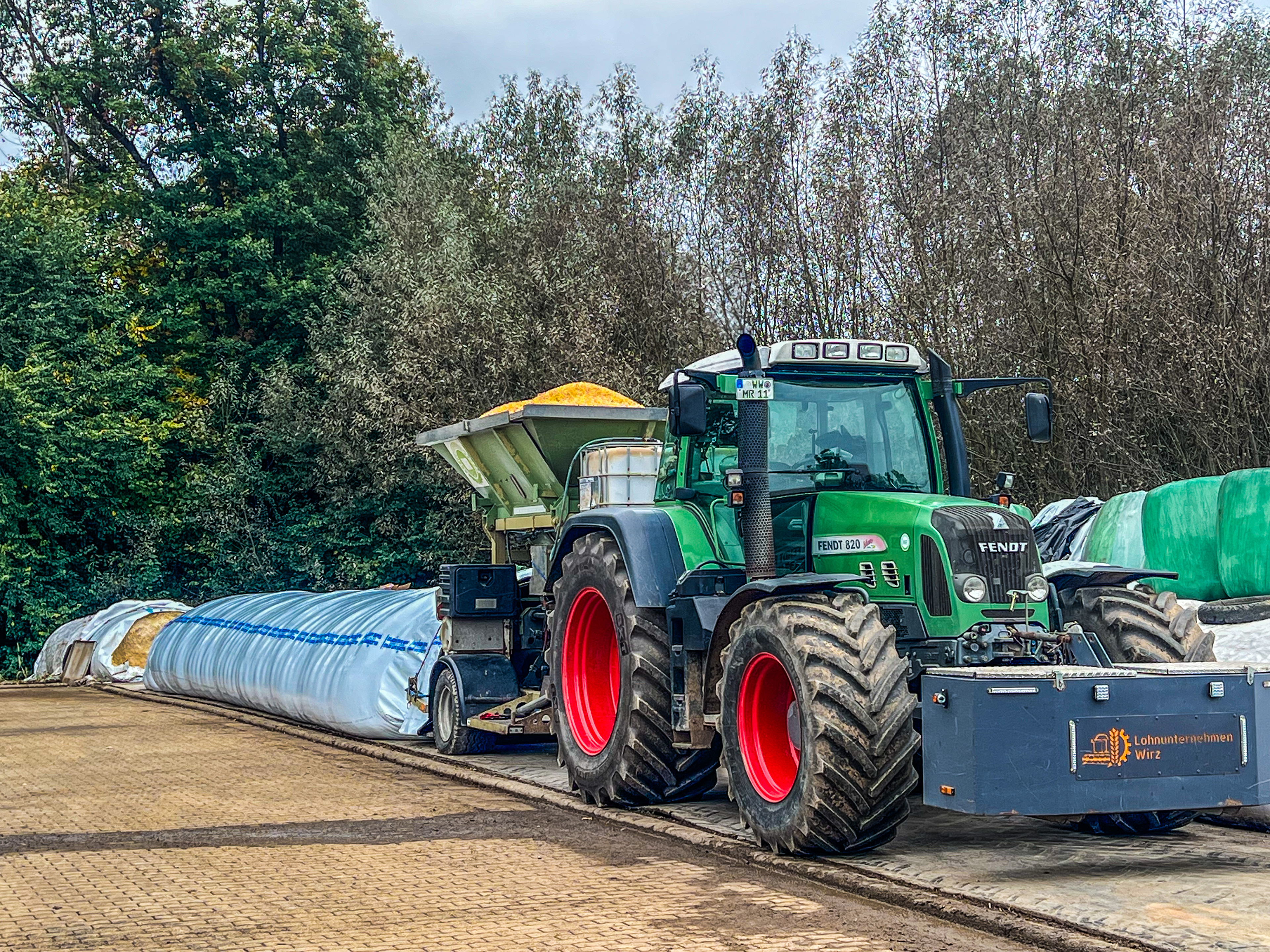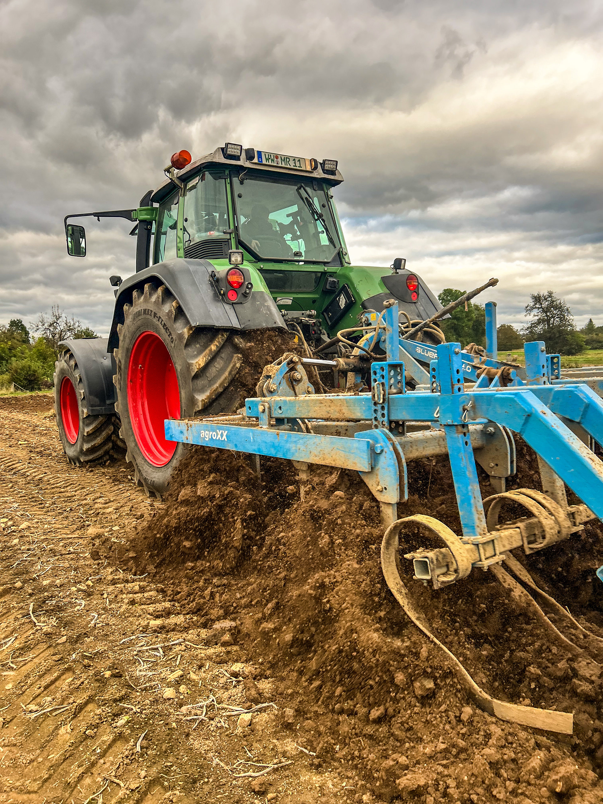 Während im Spätsommer noch der Mähdrescher seine letzten Bahnen dreht, wird parallel schon der Kartoffelvollernter angehangen, denn nun sind auch die mittleren und späten Kartoffelsorten erntereif. Die Kartoffeln werden auf der Maschine vorsortiert und danach in Holzkisten in dunklen gekühlten Hallen eingelagert, um ganzjährig für Sie im Regal zur Verfügung zu stehen. Zeitgleich wird bei uns eifrig Körnermais mit der Schlauchpresse verarbeitet und schon die Zwischenfrucht auf den Feldern für die nächste Saison gesät.