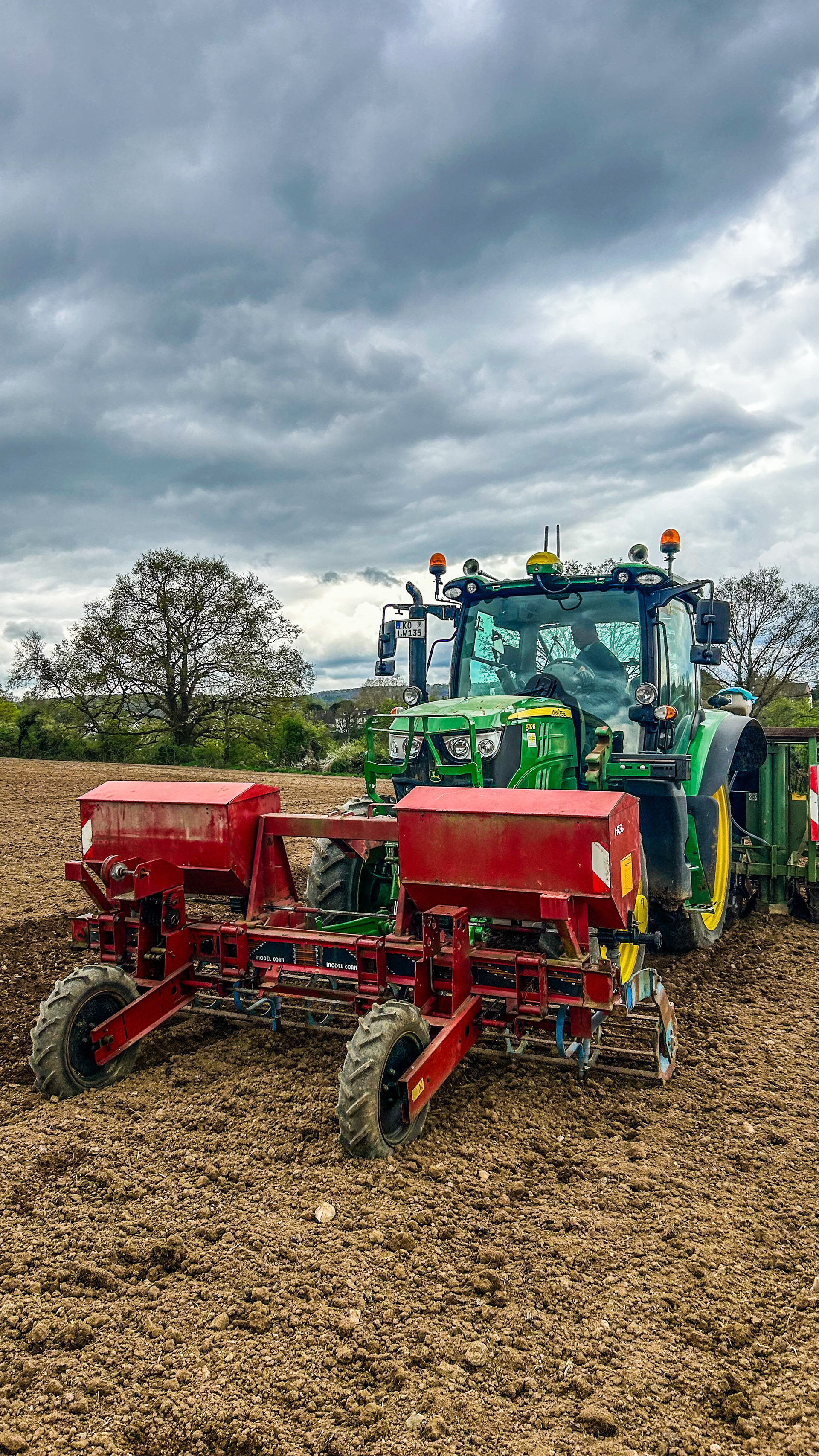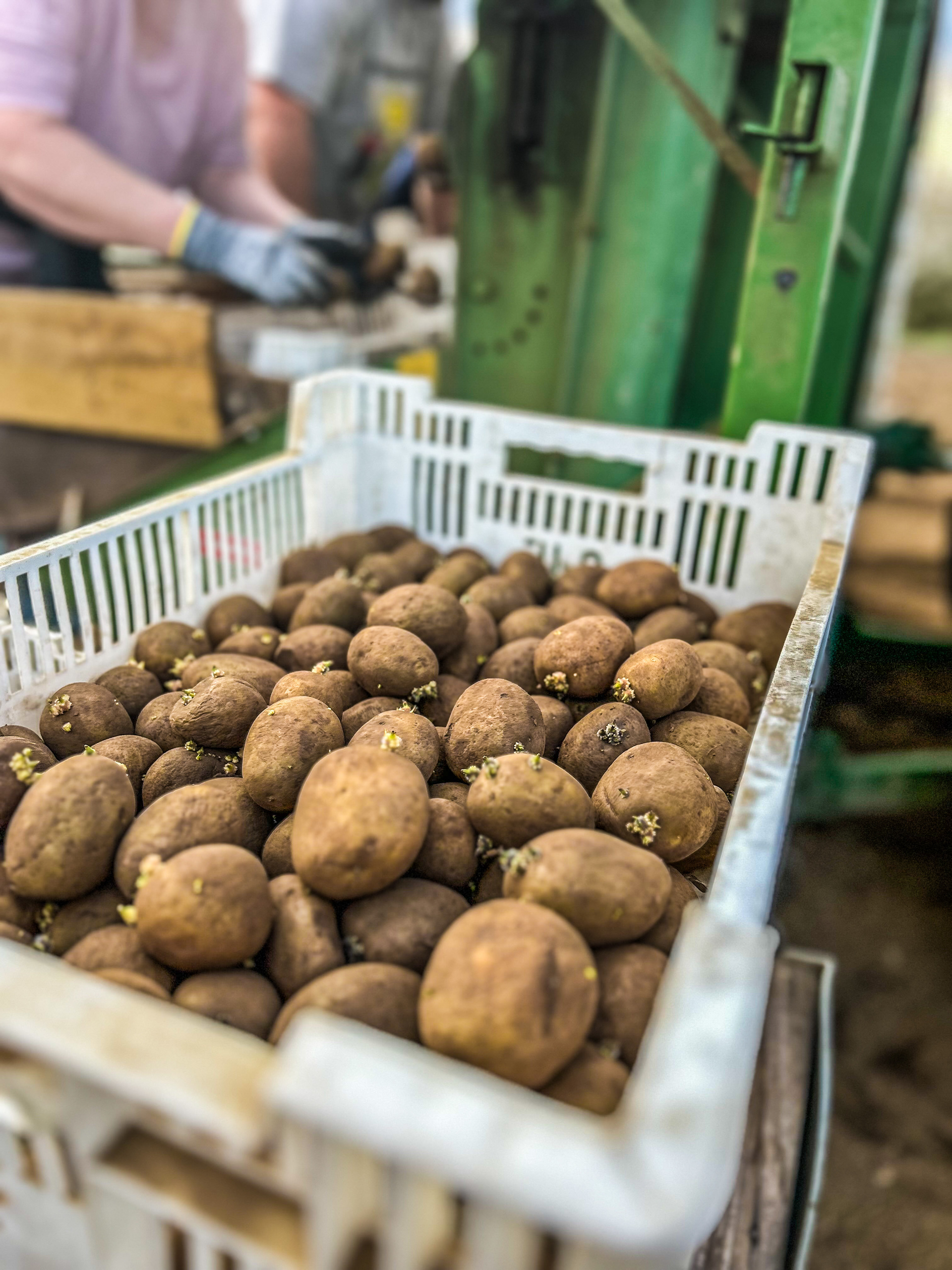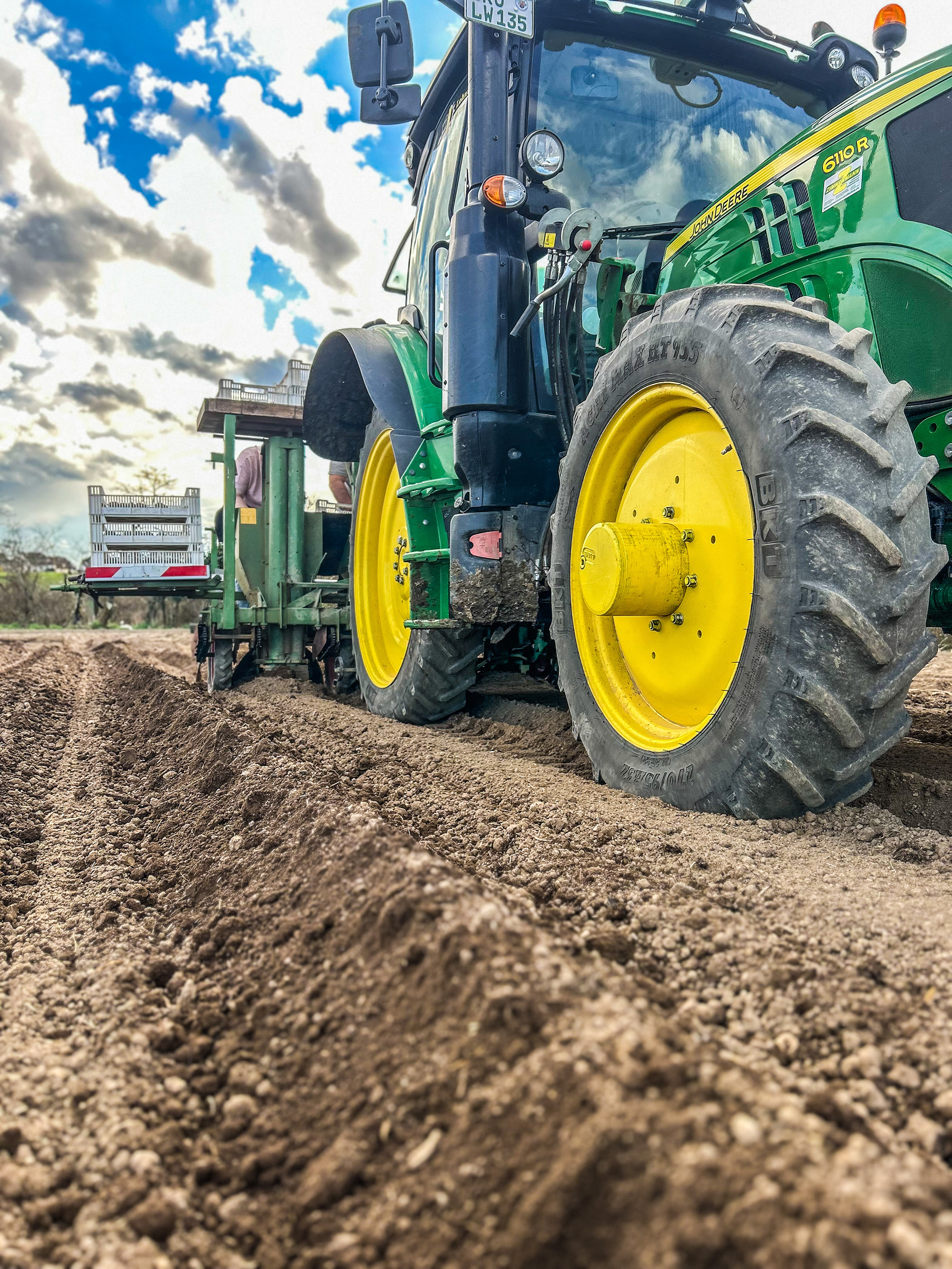 Im Frühling werden die Felder durch die Bodenbearbeitung und organische Düngung, für das darauffolgende Kartoffeln pflanzen vorbereitet. Beim Kartoffeln pflanzen wird die Knolle parallel mit Mineraldünger in die einzelnen Dämme gelegt und leicht angehäufelt. Am darauffolgenden Tag werden die Kartoffeldämme dann hoch gefräst, besondere Frühkartoffelsorten werden abschließend noch mit Polyestervlies abgedeckt.